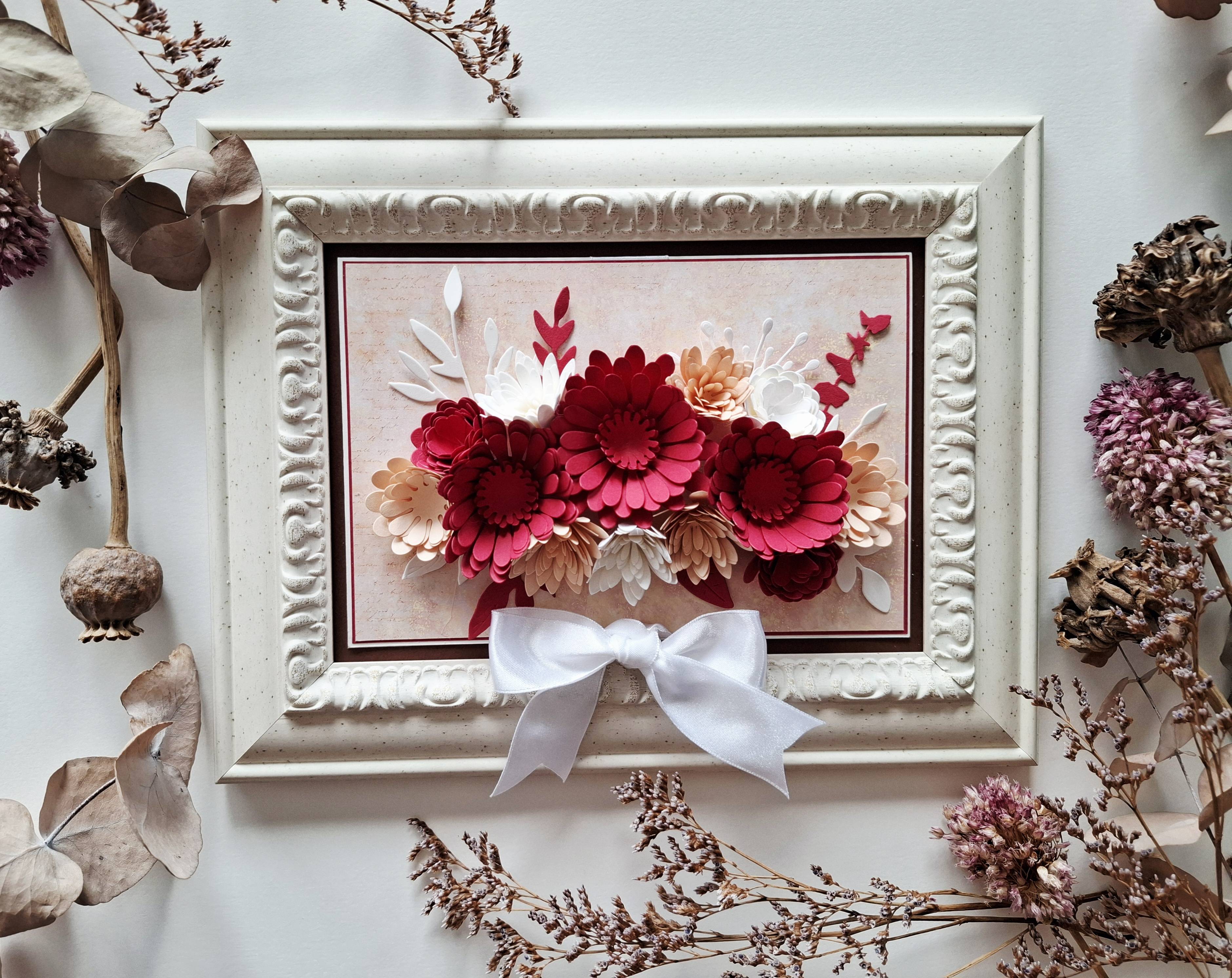 Atvirukas rėmelyje -raudonu, rausvų ir baltų atspalvių ( R-2)